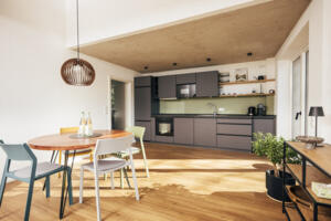 Der offene Wohn- und Essbereich besticht durch seine hohen Räumlichkeiten und eine harmonische Atmosphäre. In einer modernen Einrichtung mit warmen Farben geschaffen, lädt dieser Bereich zum Entspannen und Wohlfühlen ein. Mit allem ausgestattet, was Sie brauchen, ist dieser Raum nicht nur funktional, sondern auch der Mittelpunkt Ihrer Unterkunft, in der Sie sich rundum wohlfühlen werden.