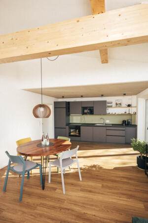 Der offene Wohn- und Essbereich besticht durch seine hohen Räumlichkeiten und eine harmonische Atmosphäre. In einer modernen Einrichtung mit warmen Farben geschaffen, lädt dieser Bereich zum Entspannen und Wohlfühlen ein. Mit allem ausgestattet, was Sie brauchen, ist dieser Raum nicht nur funktional, sondern auch der Mittelpunkt Ihrer Unterkunft, in der Sie sich rundum wohlfühlen werden.